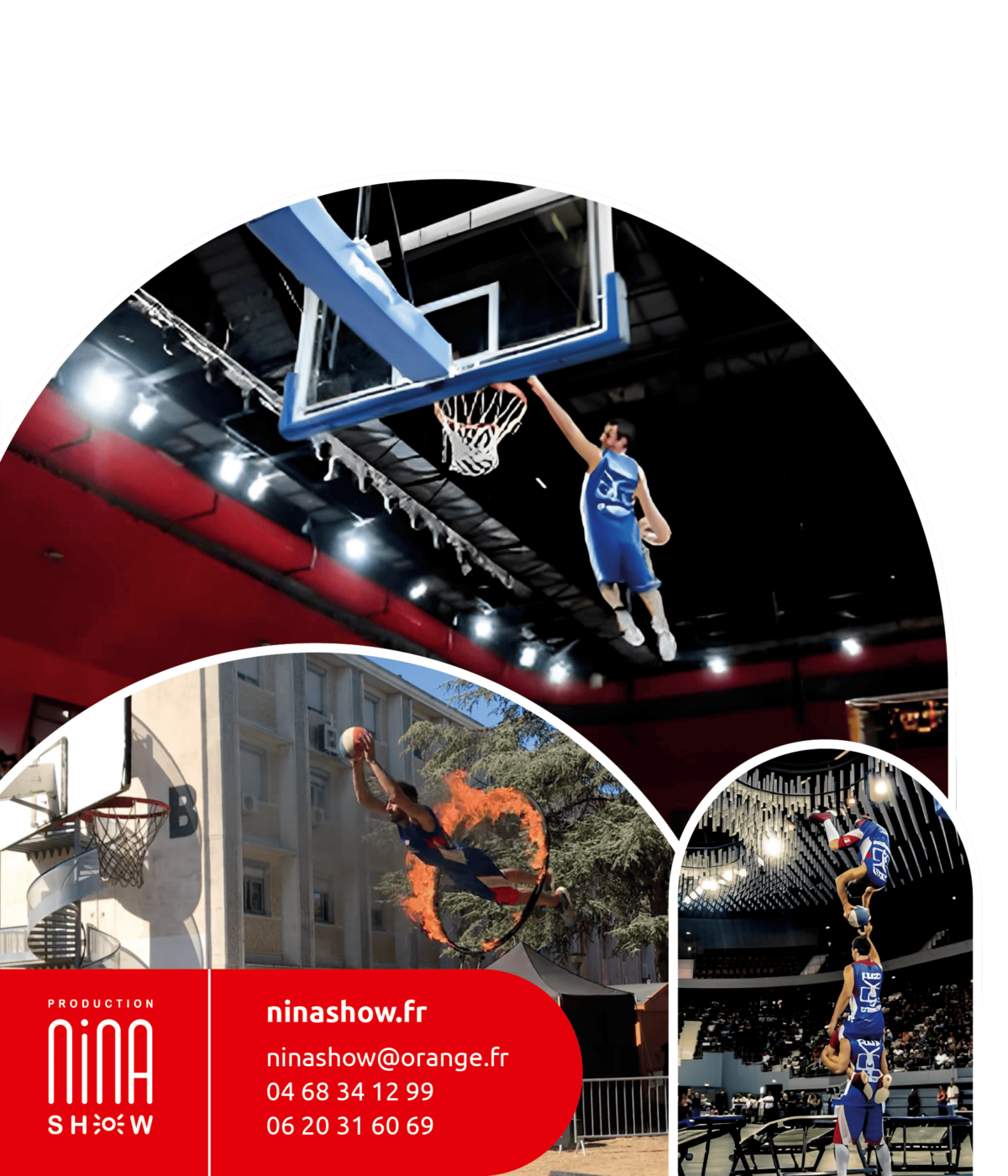 Une production dynamique, explosive, sur des rythmes endiablés, qui allie la précision des acrobaties à la brutalité des dunks. Des dunks fous réalisés à plus de 4 m du sol ponctuant différentes figures acrobatiques telles que salto avant, salto arrière, salto ½ vrille, passes “ aveugles ”, “ lasers ”, “millimétrées ”, et d’autres figures inédites, le tout